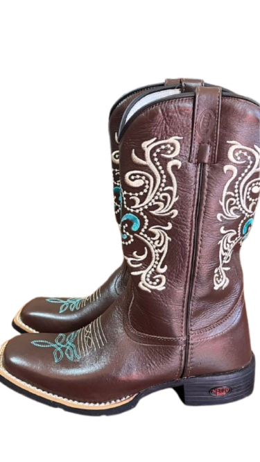 Solado em BORRACHA, que além de ser costurado, também é colado e o salto é pregado. Possui um conforto muito grande, se encaixa bem em todos os tipos de pés e garante um conforto mesmo usado em várias horas seguidas! - Bota em Couro Legítimo; - Bico Quadrado; - Cano Alto; - Solado em Borracha Costurado e Colado;. - Cano bordado nos mínimos detalhes.